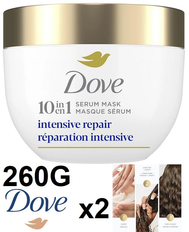 2 dove 10 in 1 serum hair mask intensive repair - 260g each
