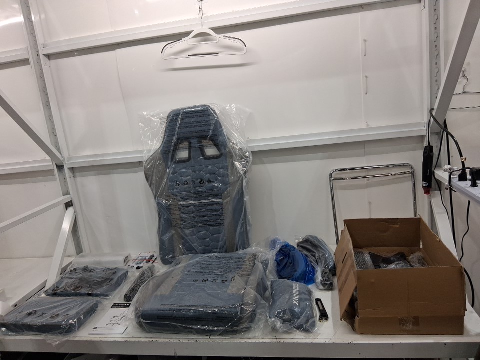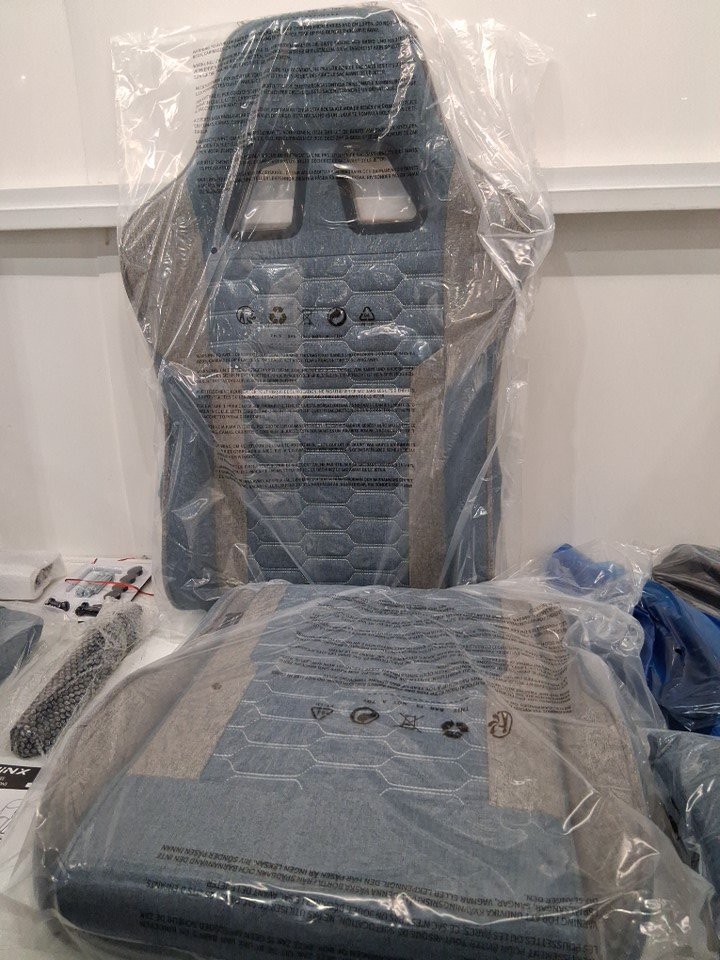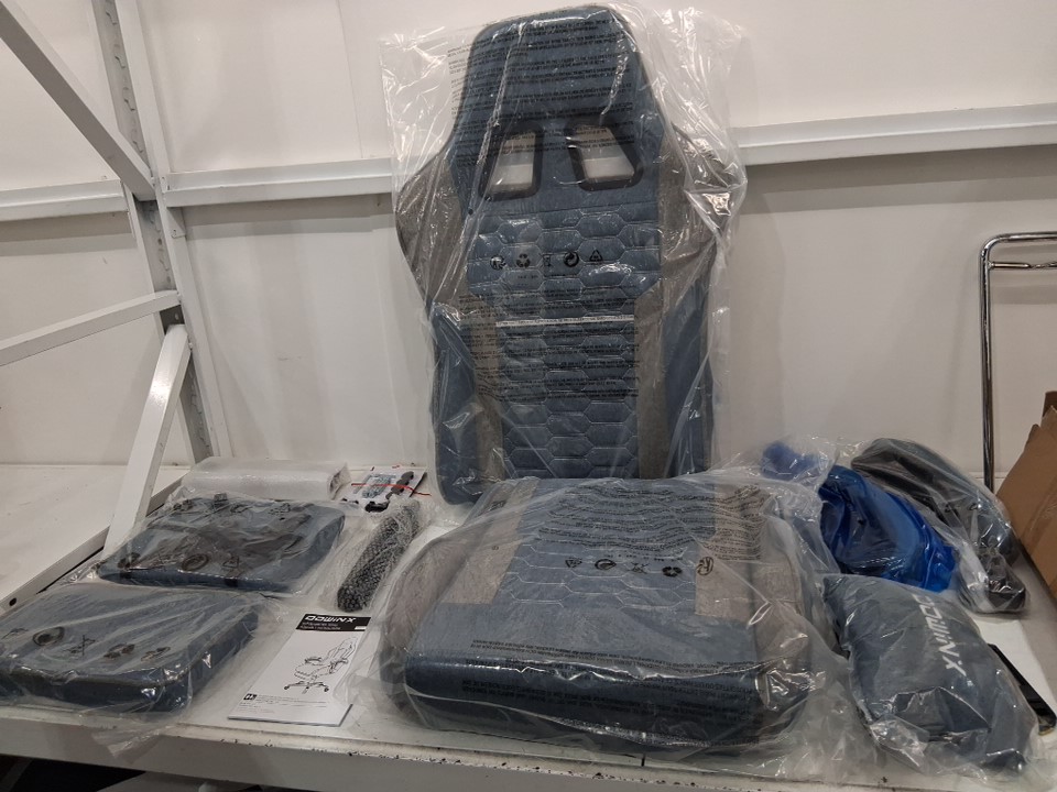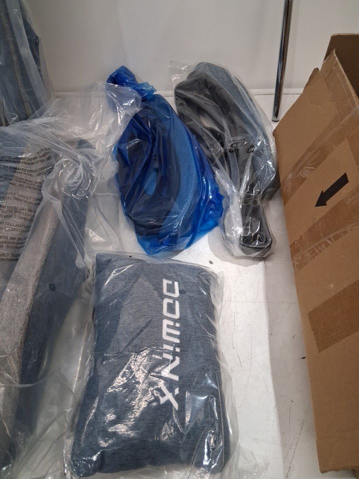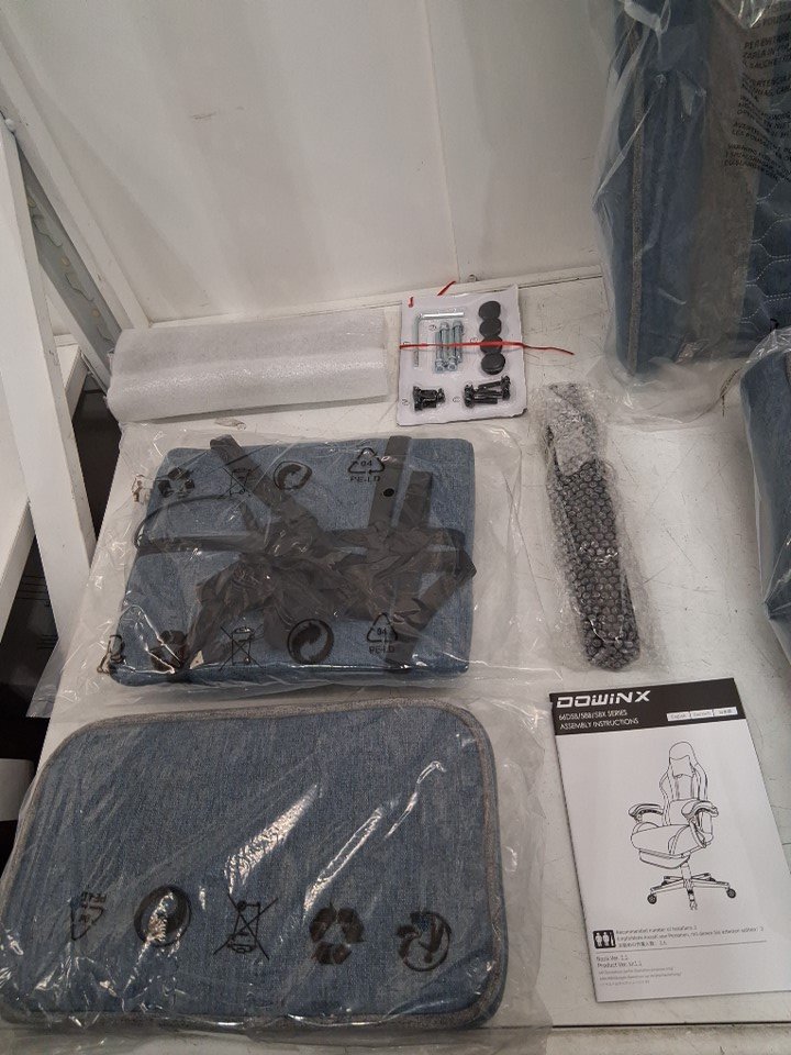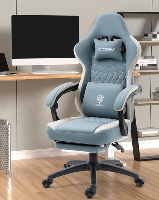 Dowinx massage cushioned gaming chair with footrest - 330lb max - Grey/Blue (Model : LS-66D58x-03)