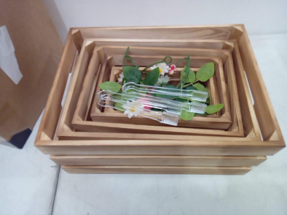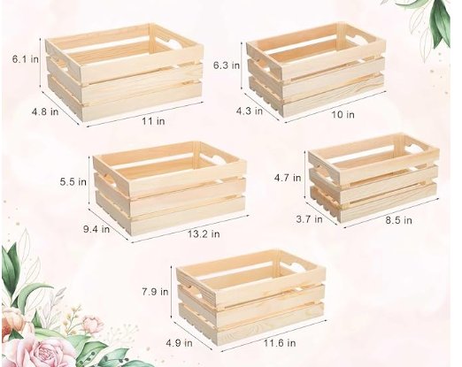 5PK Decorative Nesting Wooden Crates for Storage Display - WOOD