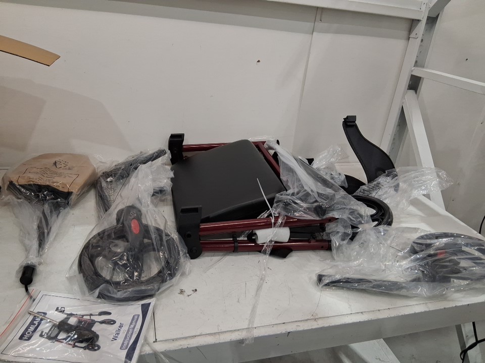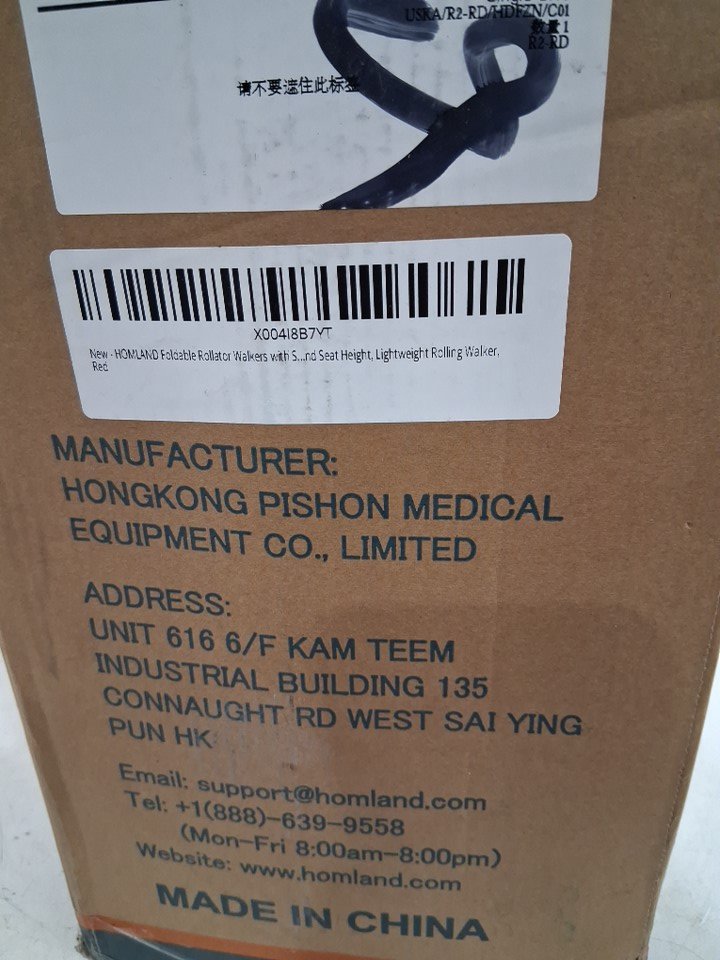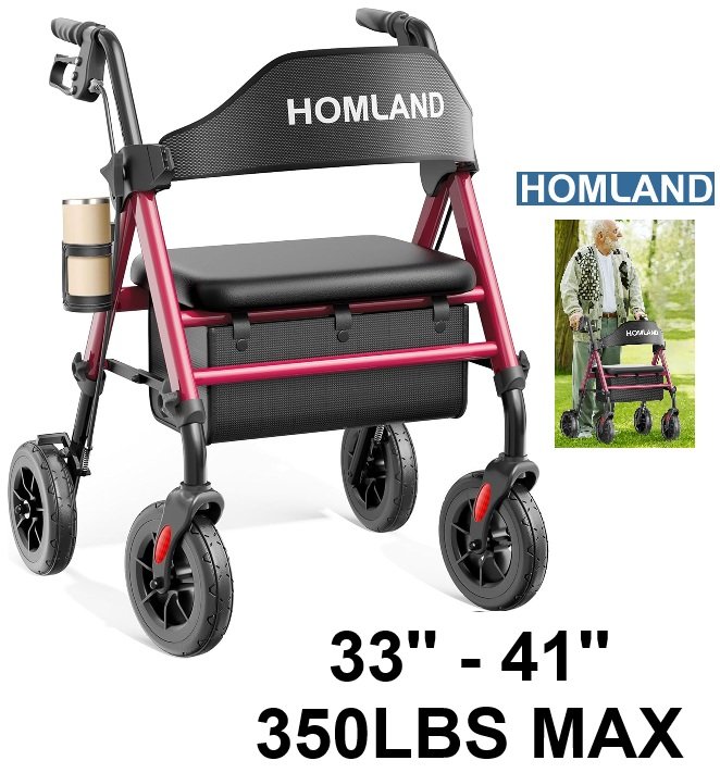 HOMLAND LIGHTWEIGHT Folding 4 WHEEL ROLLATOR WALKER, 33'' - 41''Adjustable Height-, 350lbs max- Red (MODEL: RW410-RD)