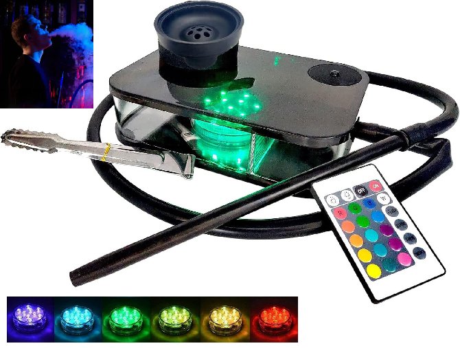 shusheng Acrylic Hookah Set with Silicone Bowl, 50pcs Tin Foil, LED Light with Remote Control - black/multi