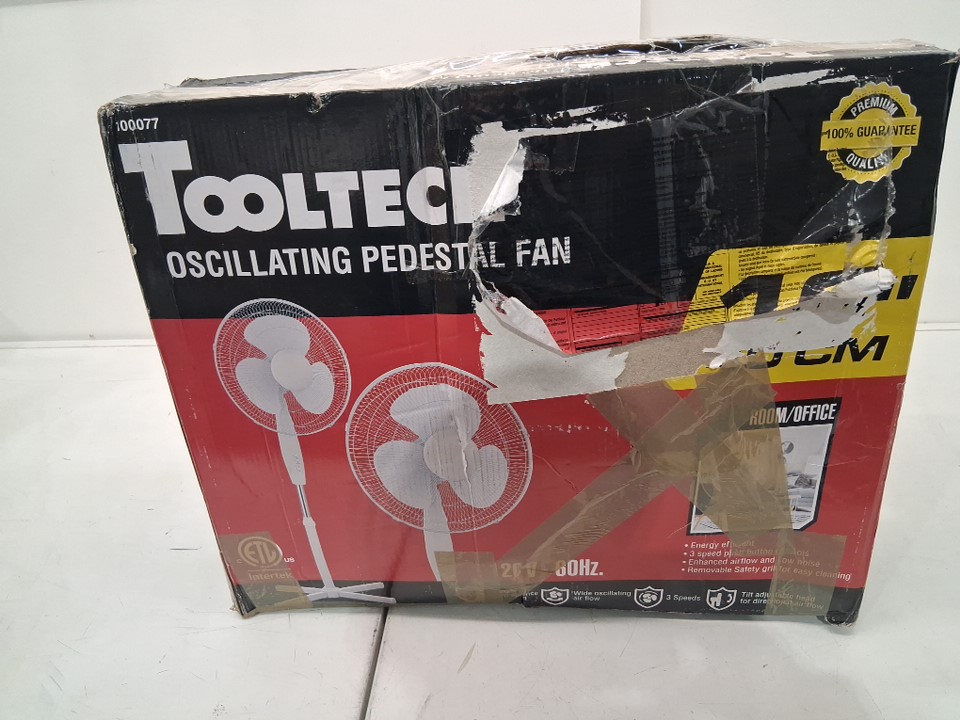 Tooltech 3-Speed oscillating pedestal fan - 16" - white (model: 100077)