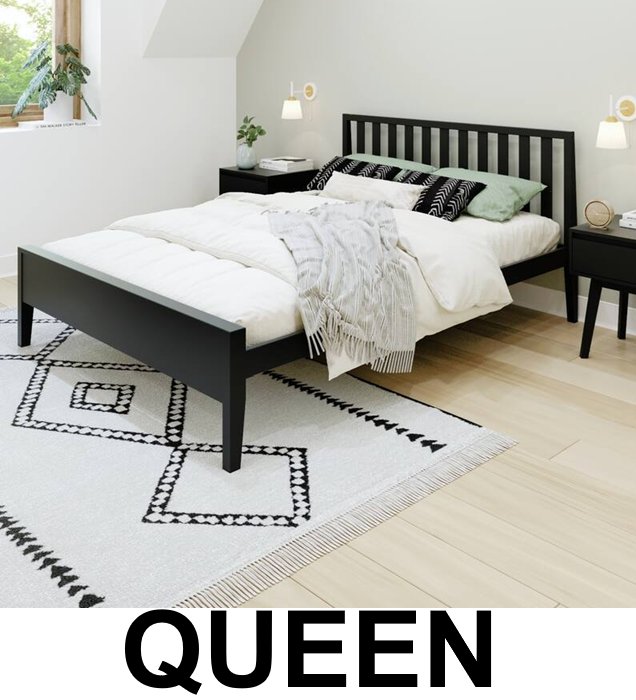 Max and Lily Scandinavian BED FRAME WITH Slatted Headboard - QUEEN - BLACK (MODEL: 210312)