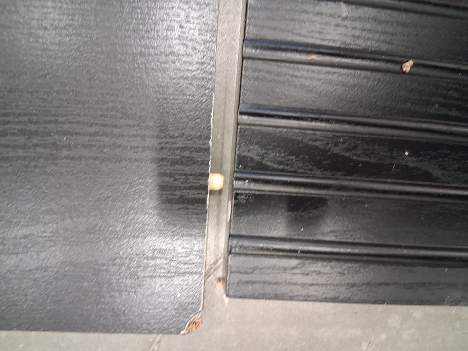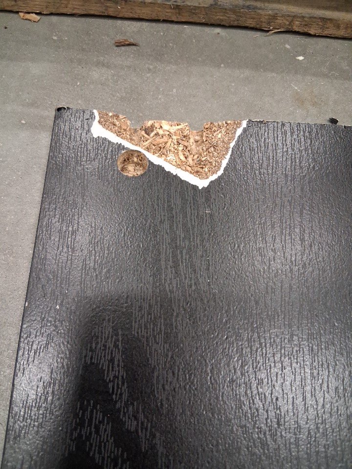 Pieces have already been put into some assembly holes. Chunk of piece is missing from a corner.