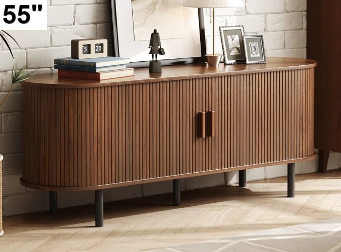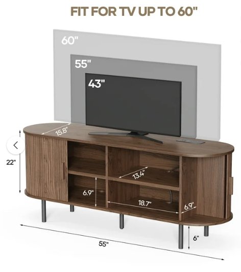 Jalonda Modern Wood TV Stand with Storage and Shelves - 55" Fits tv's up to 60" - walnut (model: ob-jl-001)