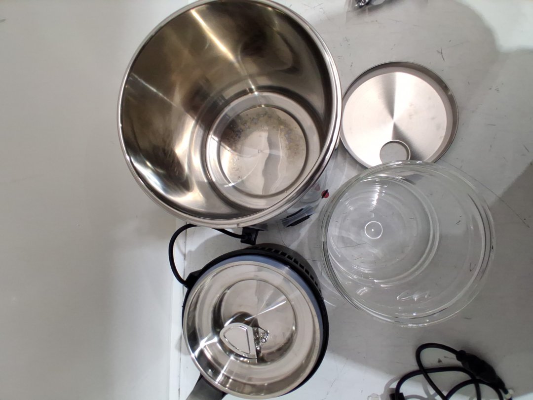 Tested for power, working. Signs of light use, some water marks inside unit and glass pot. See photos