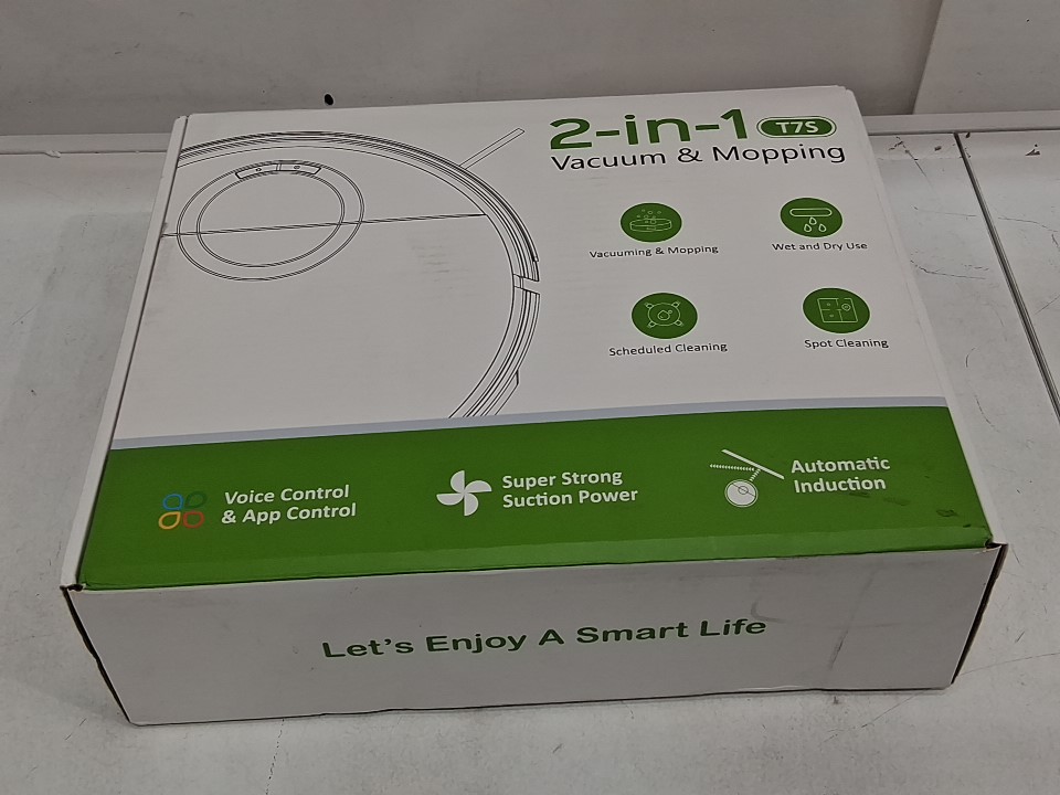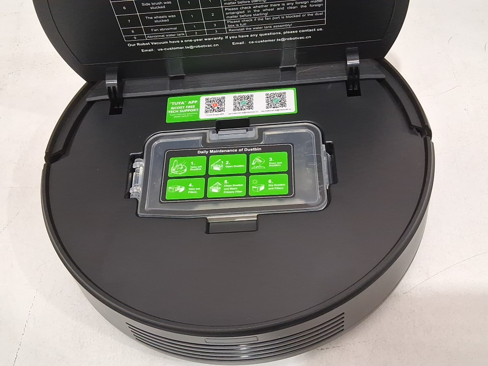 **Tested for power, movement, basic functions (spot clean/return home) using the remote. Item has light wear on the mop pad and side brushes, minor dust build-up from previous gentle use, see photos.