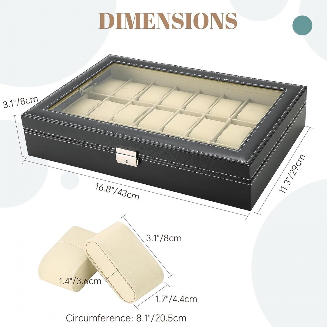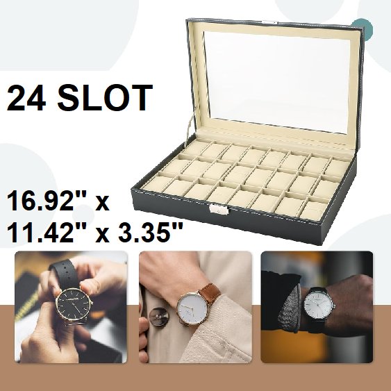 MAOPINER 24 Slot Watch Box Portable Travel Jewelry Display Case