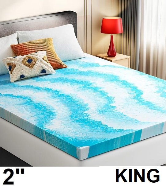 sakurahome memory foam soft gel infused mattress topper - 2" - king - blue/white