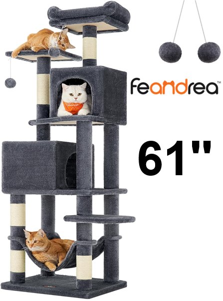 feandrea cat tower plush multi-level cat condo - 61'' - smoky grey - (model: pct192g01)