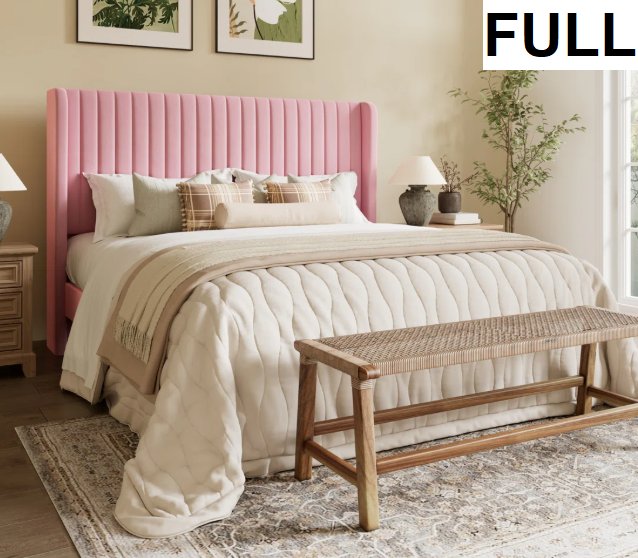 THE ART OF LIVING CANDLER VELVET UPHOSLTERED PLATFORM BED FRAME WITH WINGBACK HEADBOARD - FULL - PINK (MODEL: LE6017-1F)
