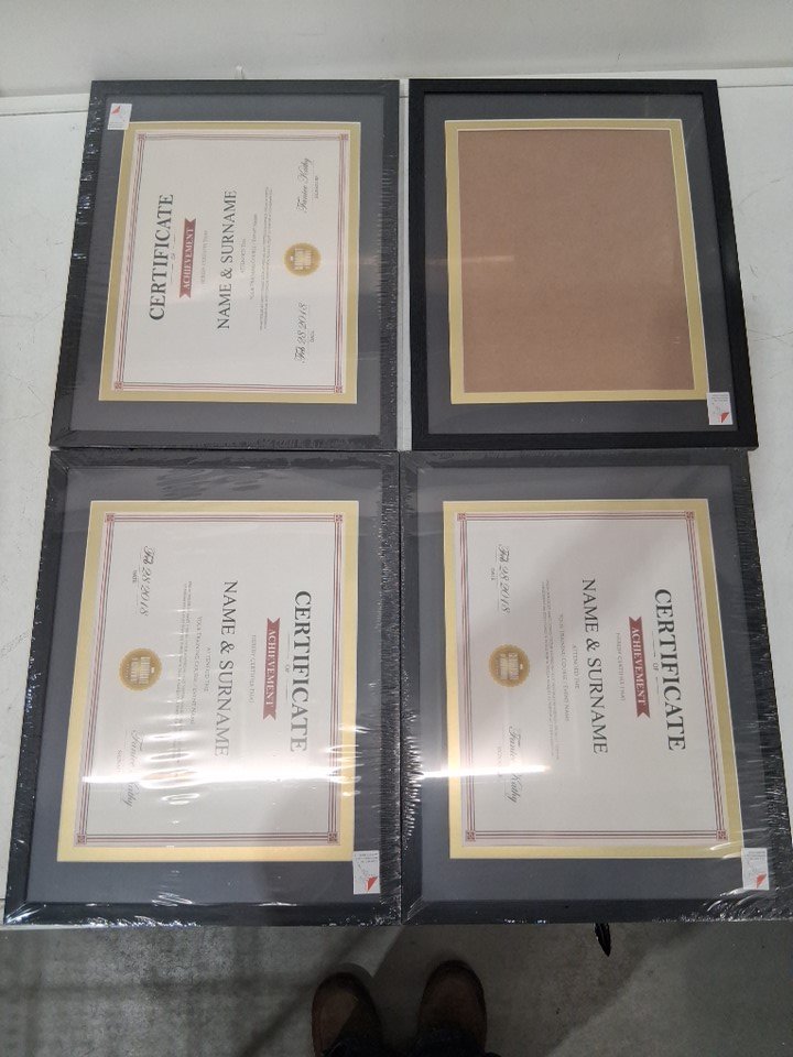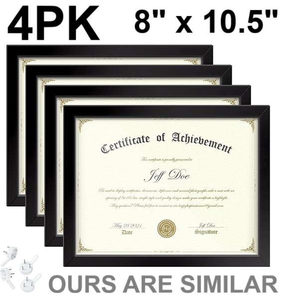 4PK CERTIFICATE/DIPLOMA PICTURE FRAME - 8" X 10.5" - BLACK/GOLD