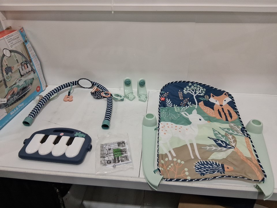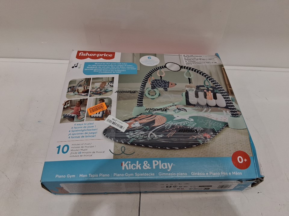 FISHER-PRICE kick and play piano gym playmat with musical and sensory toys for healthy development - 4-9 months - navy fawn (model: hkx37)