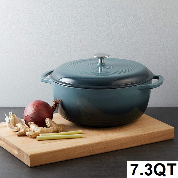 Amazon Basics Enameled Cast Iron Covered Dutch Oven - 7.3QT - Grey