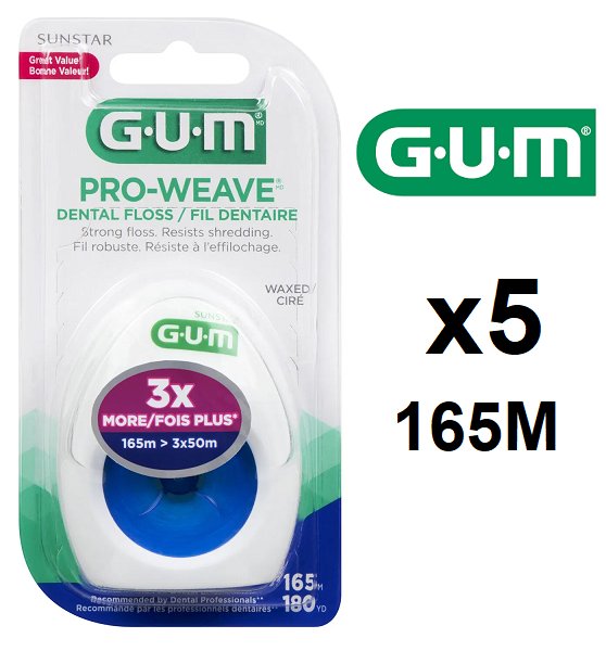 5 sunstar gum waxed pro-weave strong dental floss - 165m each