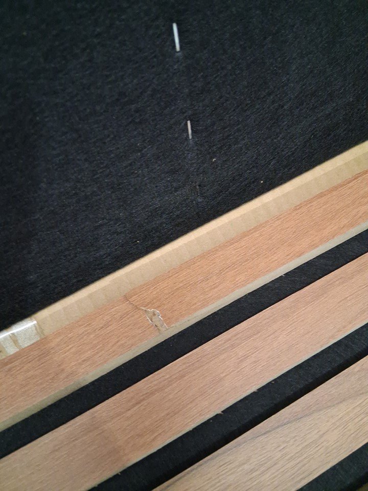 one of the back wooden slats is broken.