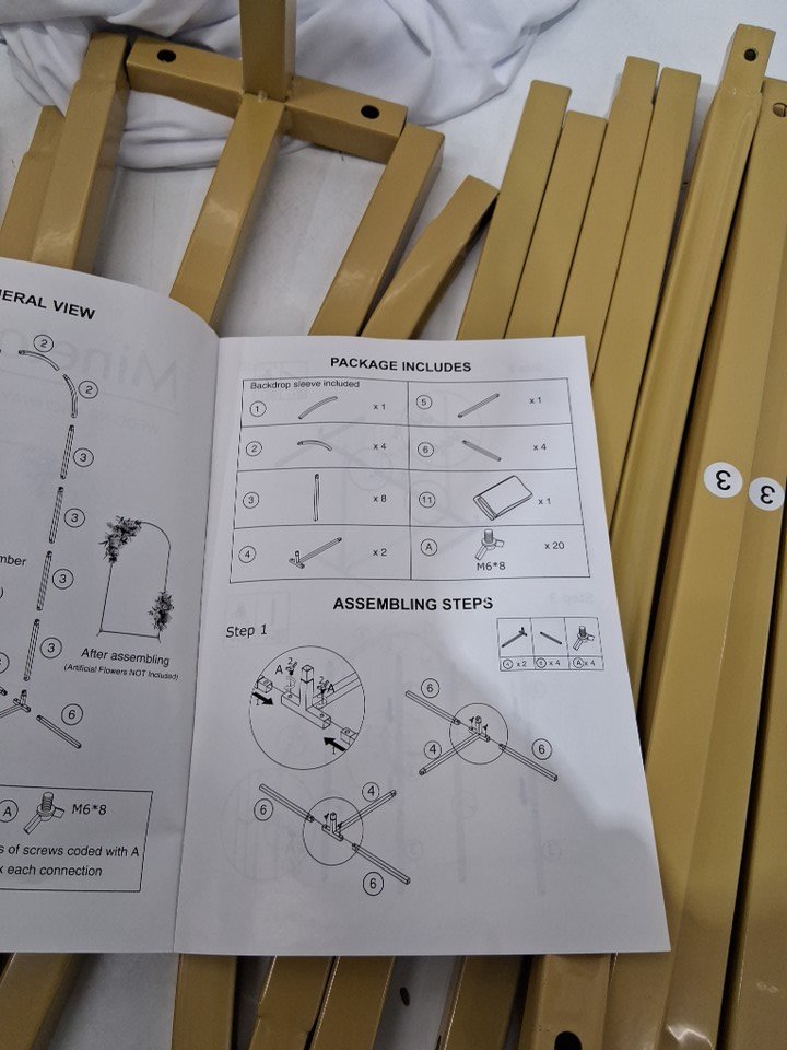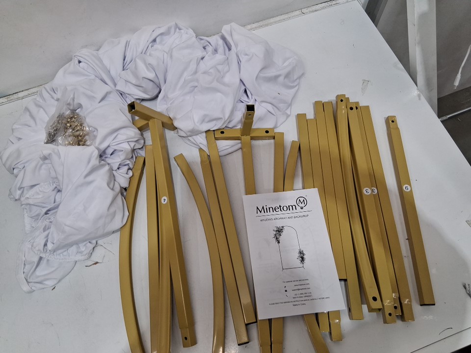 minetom Metal Arch Backdrop Stand with cover - 7.2ft - gold/white
