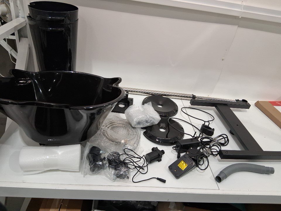 the main leg is missing, appears this part can be replaced online. there is also so marks and water residue on all parts and the bowl.