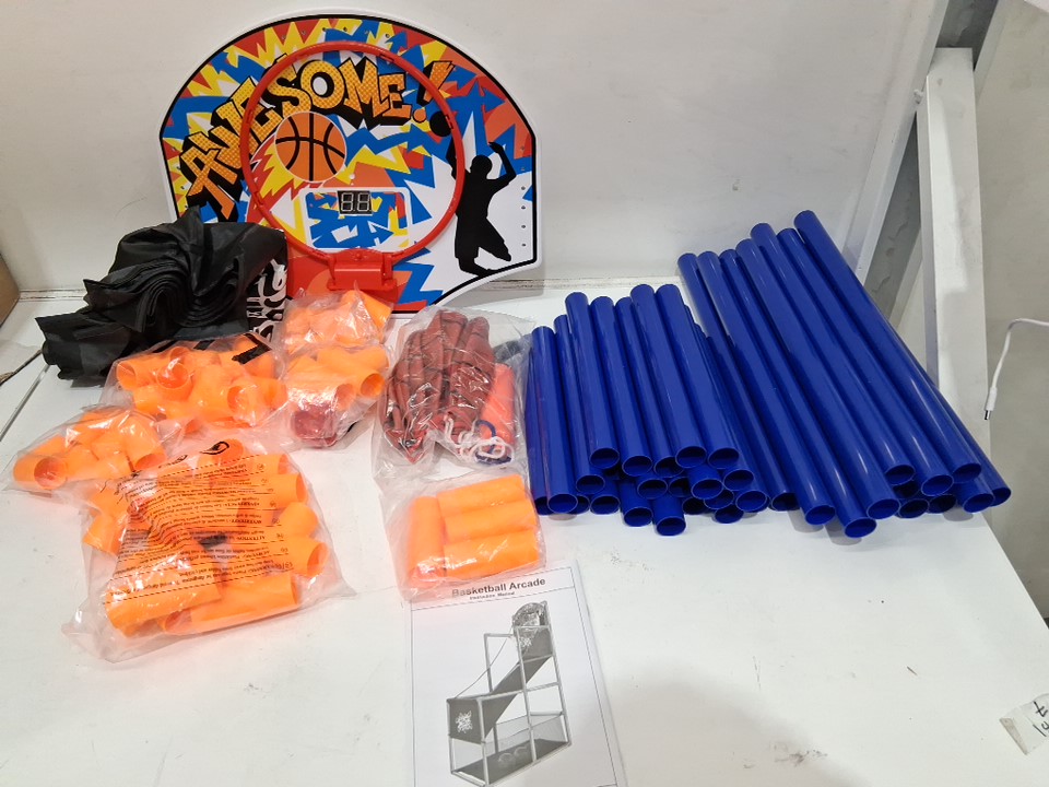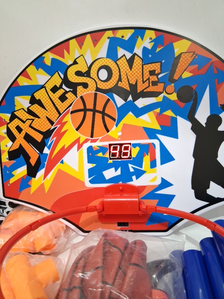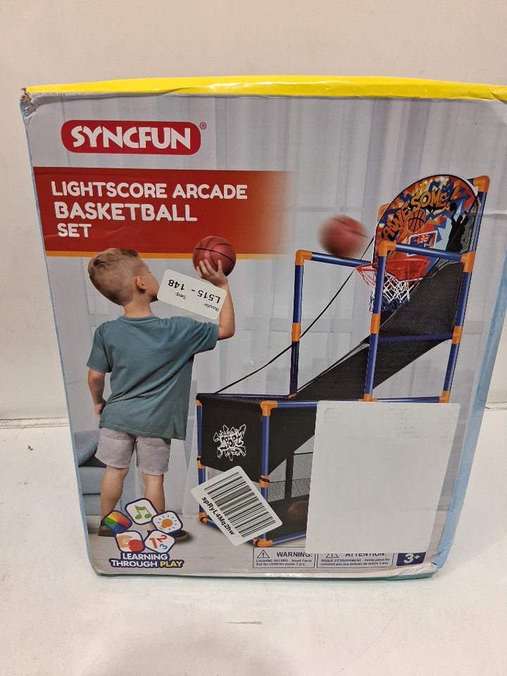 SYNCFUN LED Scoring Arcade Basketball Game Set with Electronic Scoreboard and Cheer Sounds, 4 Balls and Hoop Indoor Outdoor - Blue/Orange