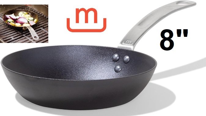 made in cookware Seasoned Blue Carbon Steel Frying Pan - 8" - black/silver (model: ‎COOK-8-FRYCN-S)