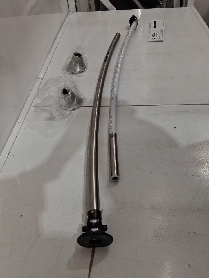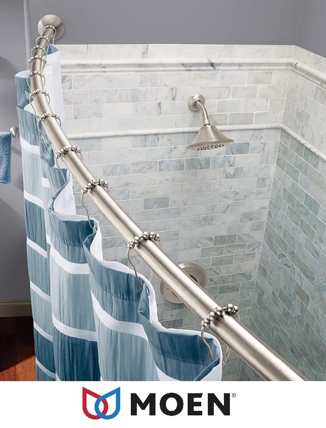 MOEN TENSION CURVED SHOWER ROD - 5FT - BRUSHED NICKEL - (MODEL: CSR2172BN)