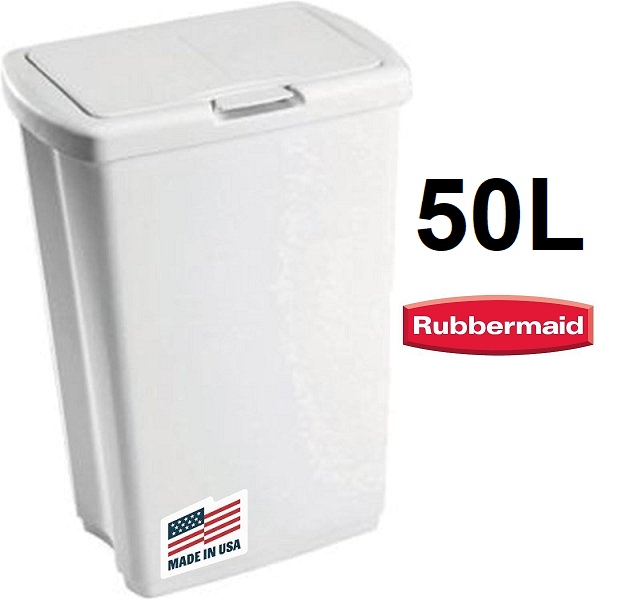 Rubbermaid Rectangular touch top trashcan with lid - 50l - White