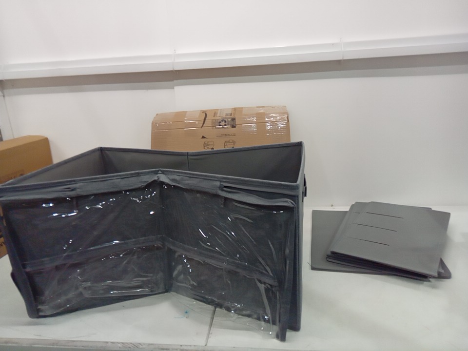 foldable storage bag with plastic zipper lid and dividers - 30" x 17" - grey