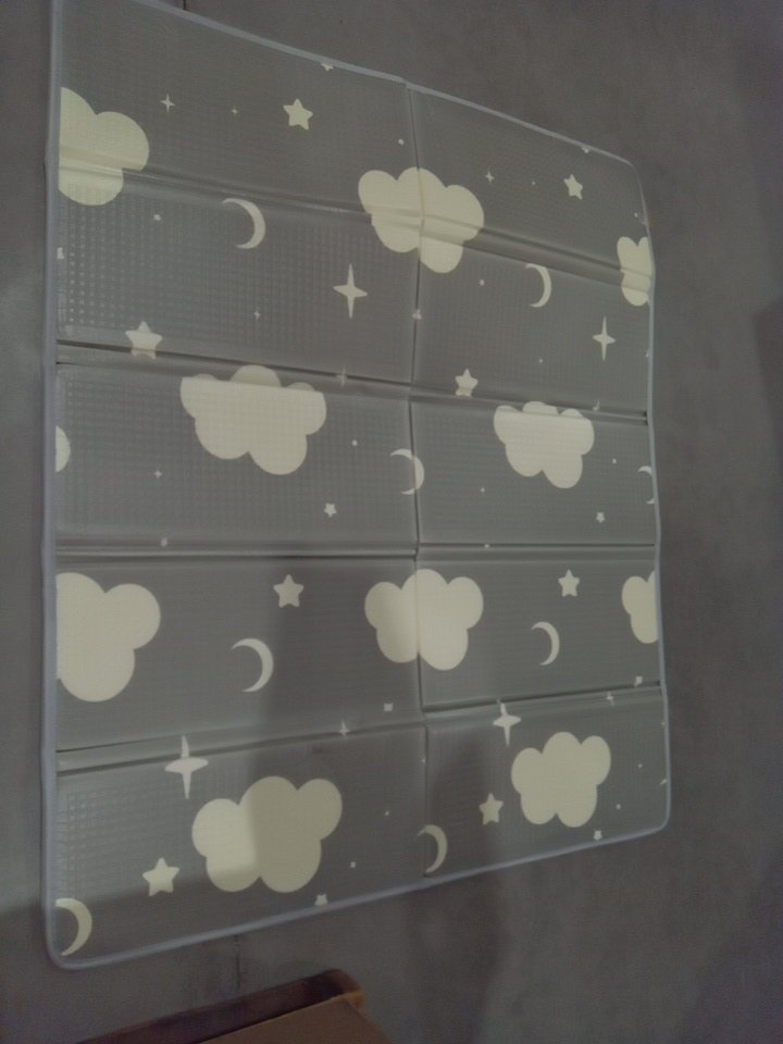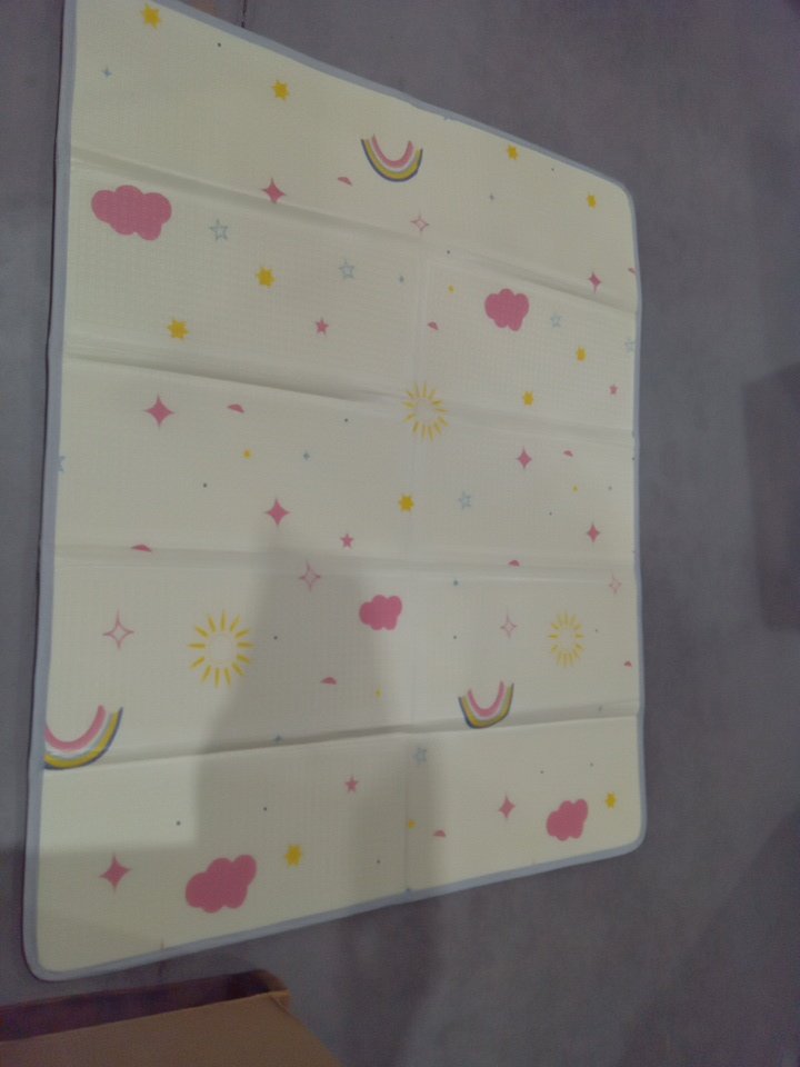 mallify Extra Large Foldable Reversible Baby Play Mat with Edge Reinforcement - 79" x 71" - grey/yellow clouds/rainbow
