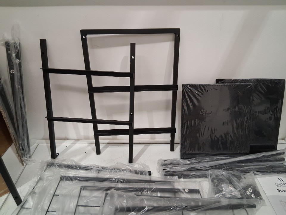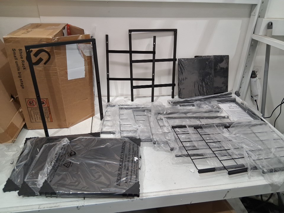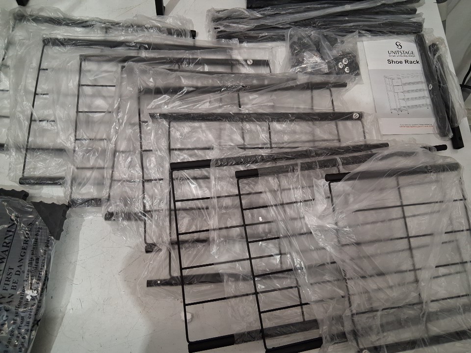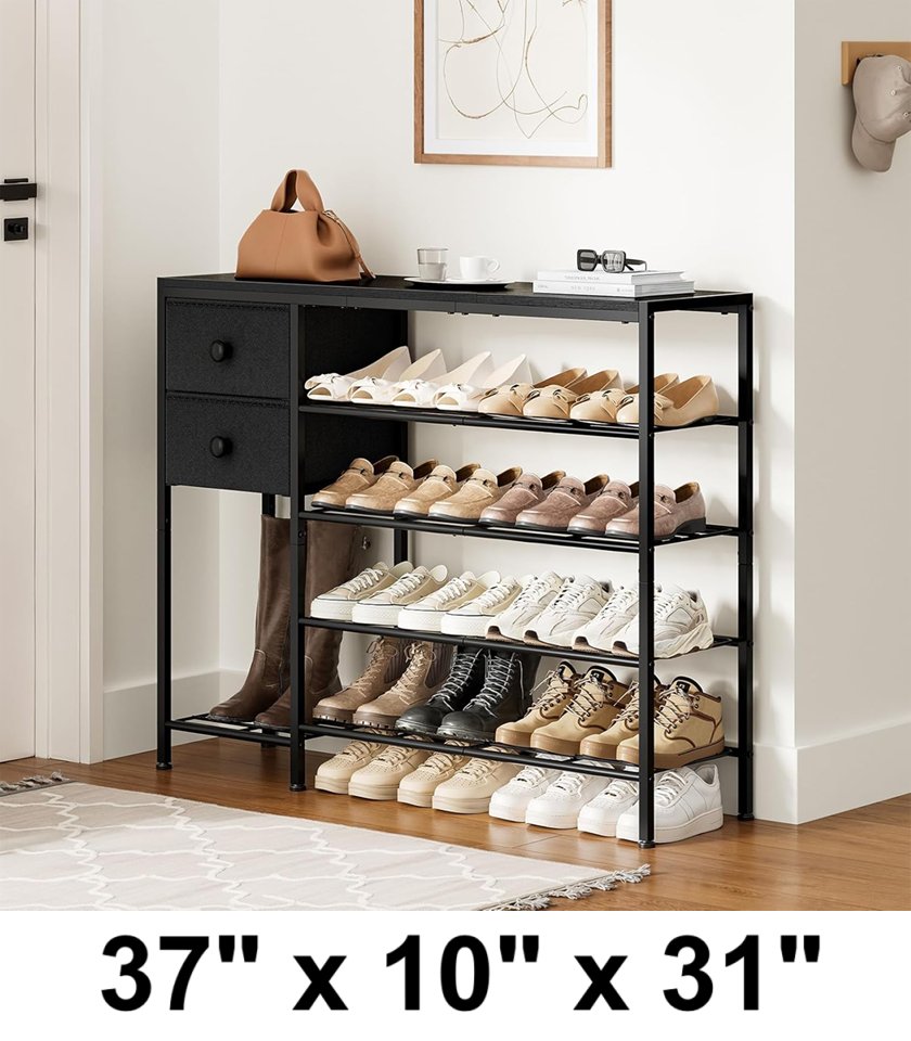 unitstage 5-tier metal shoe rack with 2 fabric drawers, 16-20pr shoes, black