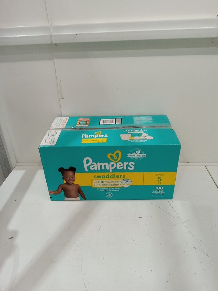 100PK PAMPERS SWADDLERS up to 100% LEAKPROOF BABY DIAPERS - SIZE 5