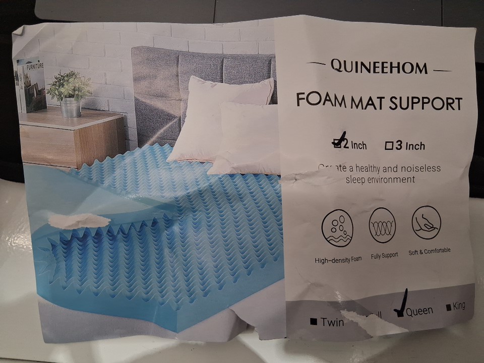 QUINEEHOM 2" Mattress Topper Cooling Foam with Gel Infused Egg Crate Removable Cover - QUEEN - WHITE/BLUE