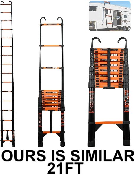 CARBON STEEL TELESCOPIC LADDER - 21FT - BLACK/ORANGE (MODEL: JD-S1063)