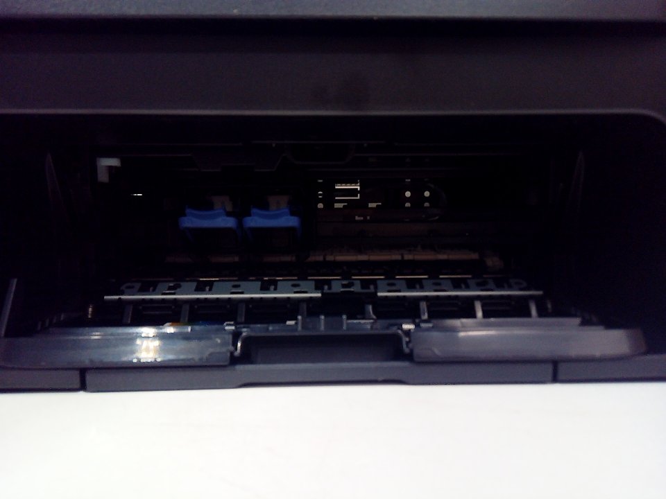 Ours does not include any ink cartridges. Tested for power. (SEE PHOTOS)