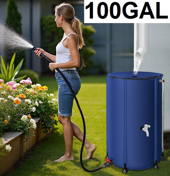 FAMIROSA Collapsible Portable Rain Barrel - 100 Gallon / 378L - BLUE