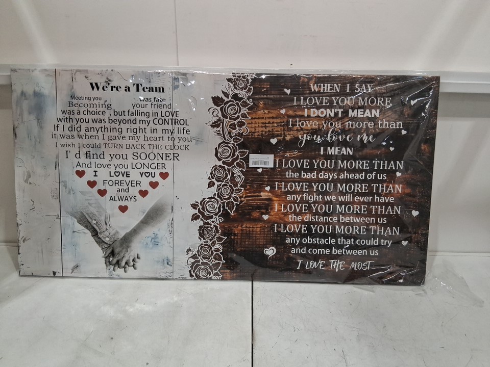 Large Romantic Quote Wall Art Framed Canvas Print with Love Message - 28" X 48" - WHITE/BROWN/RED