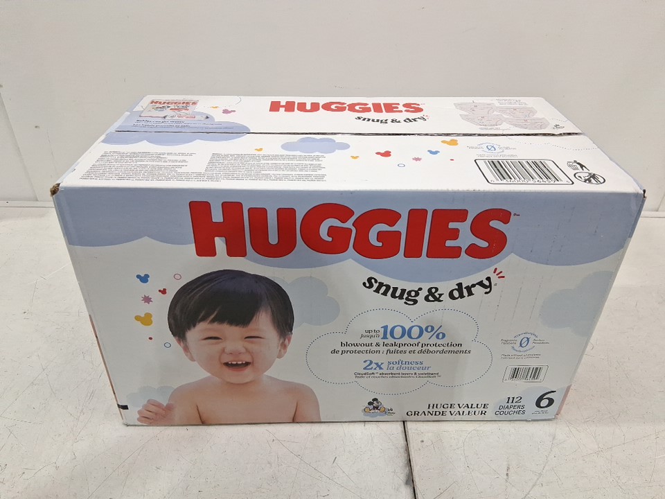 112pk HUGGIES SNUG AND DRY DIAPERS 100% blowout and leakproof protection - size 6