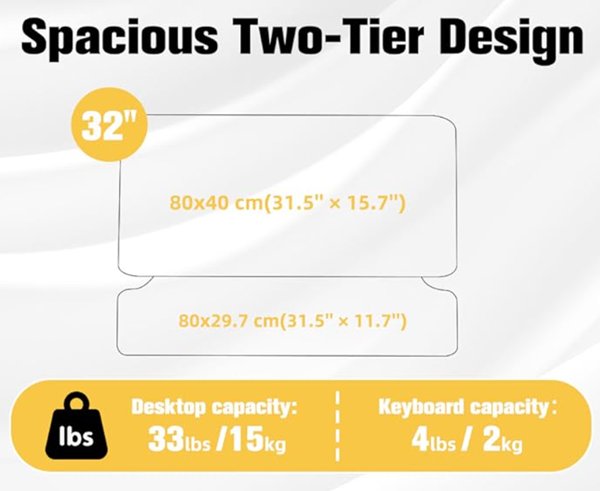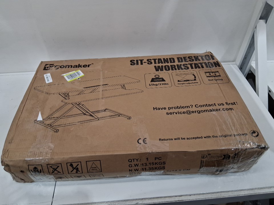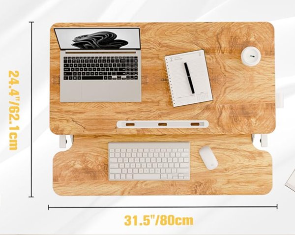 ERGOMAKER Height Adjustable Quick Sit to Stand Up Desk Converter Riser - 32" - 33LBS/4LBS CAP - White/Light Rustic Brown (MODEL: DC02-32-WFLRBD)