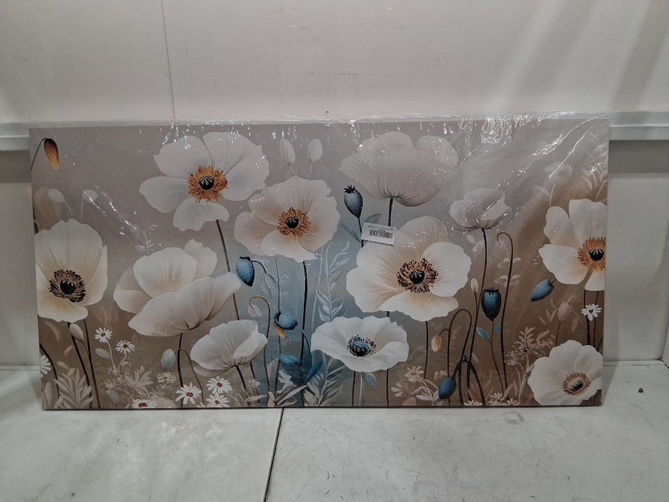 Elegant Large White Poppy Flower Wall Art Canvas - 24" x 48" - white/ brown/ blue