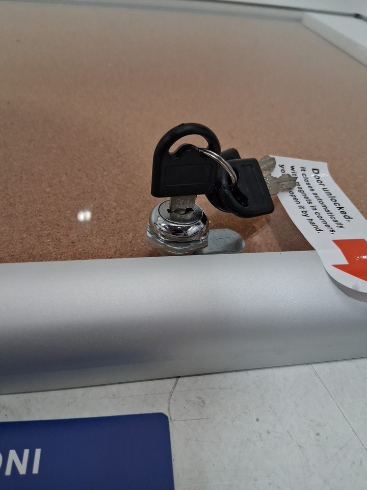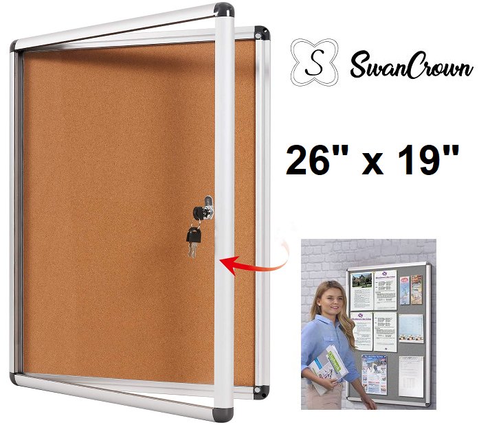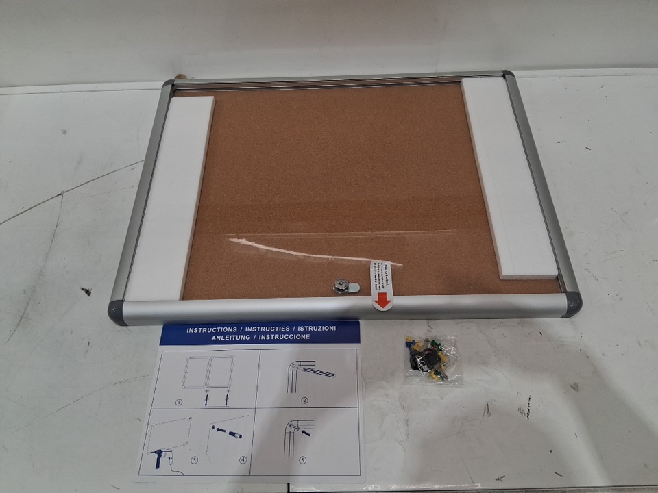 Swansea Lockable Notice Bulletin Pin Cork Board - 26" x 19" - silver/cork