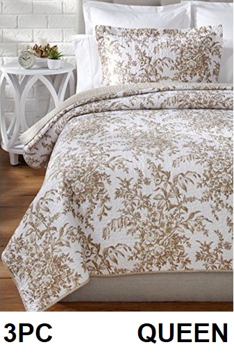 3PC Laura Ashley Bedford Reversible Quilt Set - Queen - MOCHA