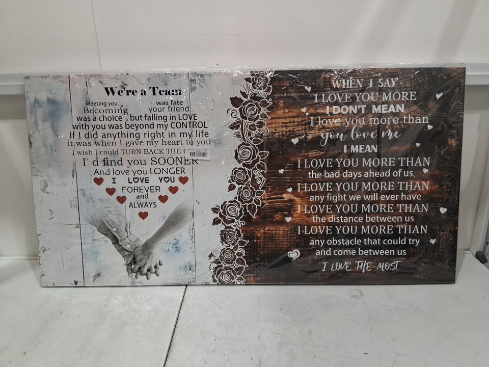 Large Romantic Quote Wall Art Framed Canvas Print with Love Message - 28" X 48" - WHITE/BROWN/RED