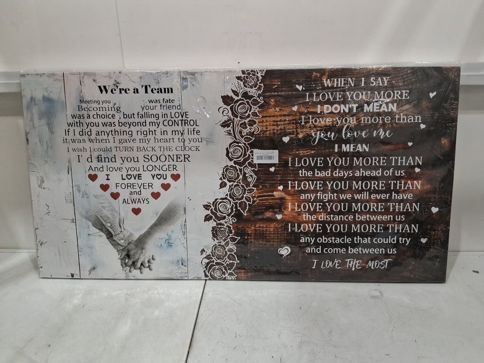 Large Romantic Quote Wall Art Framed Canvas Print with Love Message - 28" X 48" - WHITE/BROWN/RED