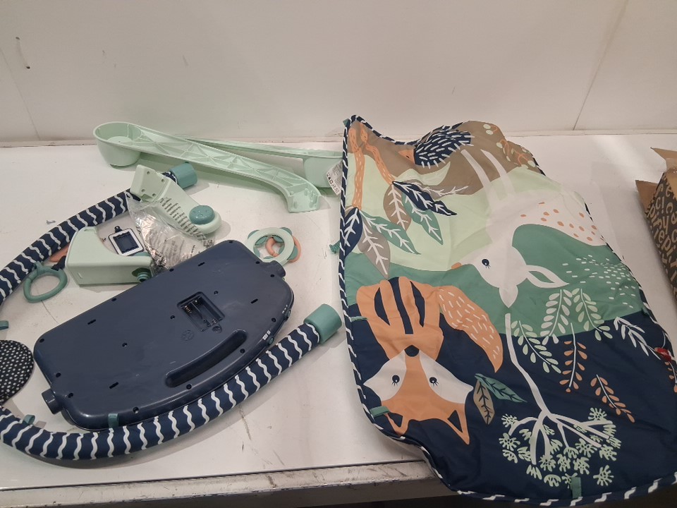 There are a few stains and marks on the item, clean before use. ALso the lights did not turn on when inspected but the sound does work, the lights may work with other batteries.