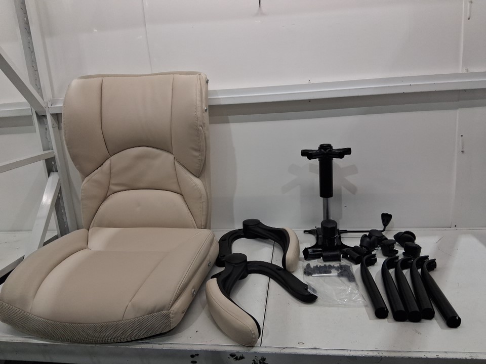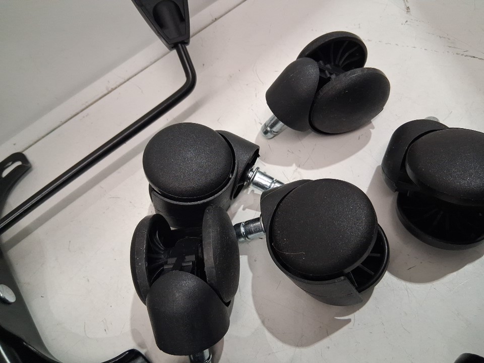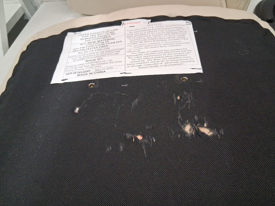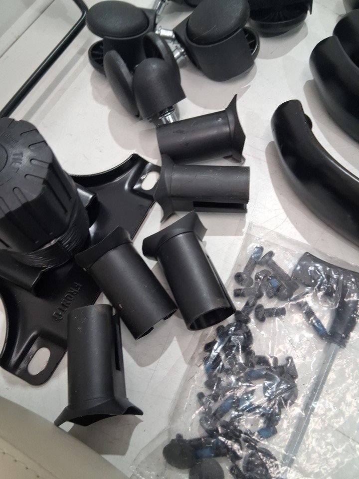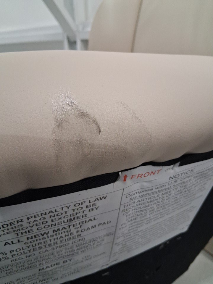 Some marks on pieces for office chair and on the back of seat fabric has been pulled, see photos.