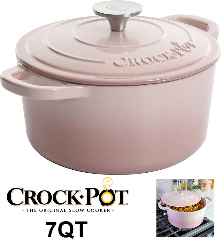 crock-pot artisan round enameled cast iron dutch oven - 7qt - blush pink - (model: ‎125297.02r)
