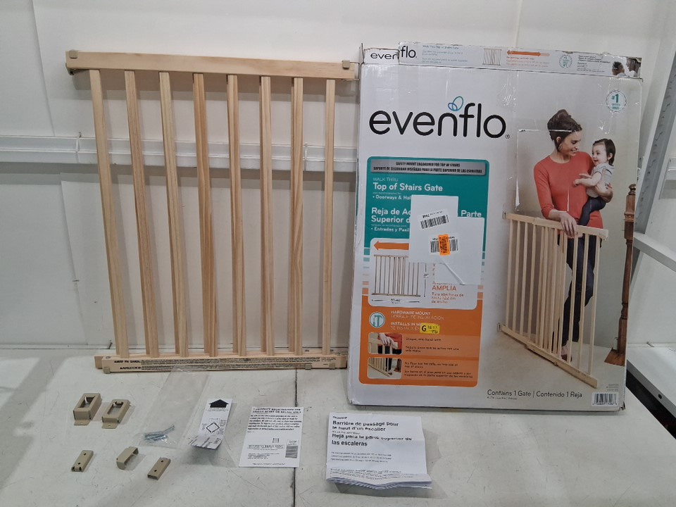 EVENFLO WALK-THRU TOP OF STAIRS extra wide BABY and PET GATE - 32" x 30" - 48" - NATURAL WOOD brown (MODEL: 10500)