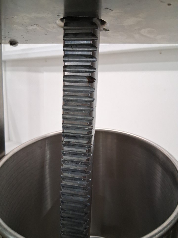 The item shows some scuffs and stains from prior use and is missing the thread rod and hand crank. Refer to the photos.