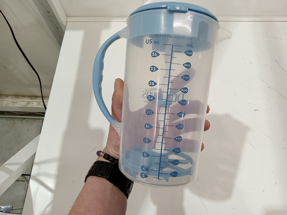 Dr. Brown's Baby Formula Mixing Pitcher with Adjustable Stopper -Locking Lid and No Drip Spout - 36OZ - BLUE (model:ac234)