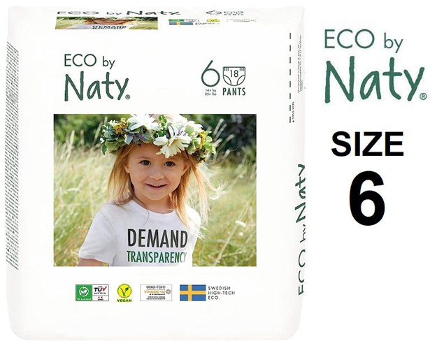 18pk ECO BY NATY premium plant based vegan pull up training pants - size 6 - flowers