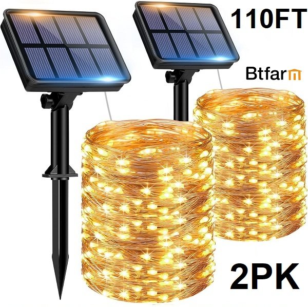 2pk btfarm solar string lights - 110ft - total 300led (150 each)
